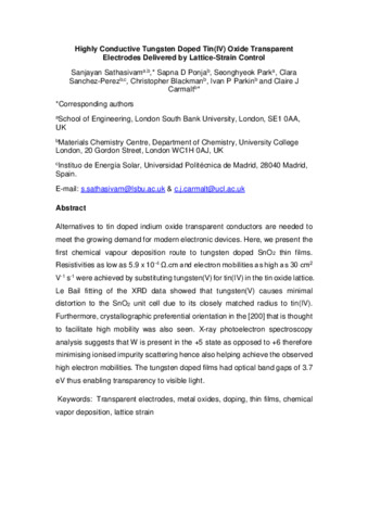 Title: | Highly Conductive Tungsten-Doped Tin(IV) Oxide Transparent Electrodes Delivered by Lattice-Strain Control |