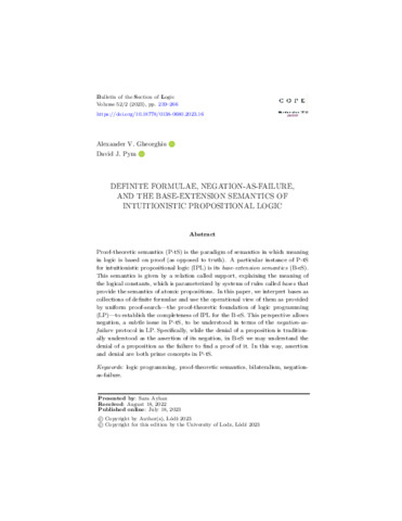 | Title: | Definite Formulae, Negation-as-Failure, and the Base-Extension Semantics of Intuitionistic Propositional Logic |