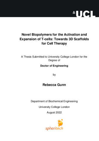 Becci Gunn - EngD Thesis 2022 - Novel Biopolymers for the Activation and Expansion of T-cells.pdf - Other Download (12MB) | Preview |