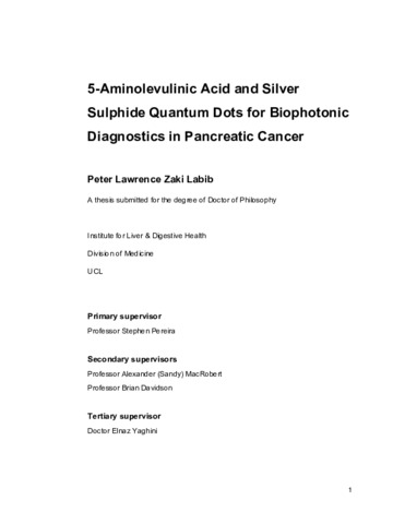 | Title: | 5-Aminolevulinic acid and silver sulphide quantum dots for biophotonic diagnostics in pancreatic cancer |