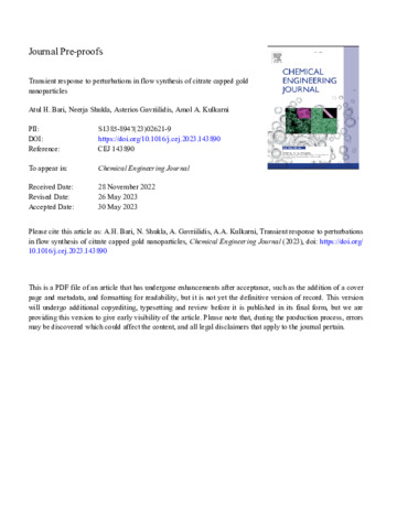 Title: | Transient response to perturbations in flow synthesis of citrate capped gold nanoparticles |
