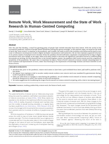 Title: | Remote Work, Work Measurement and the State of Work Research in Human-Centred Computing |
