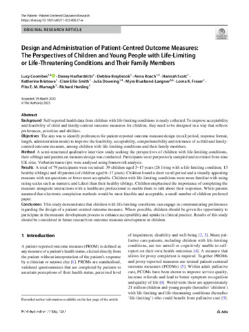Title: | Design and Administration of Patient-Centred Outcome Measures: The Perspectives of Children and Young People with Life-Limiting or Life-Threatening Conditions and Their Family Members |