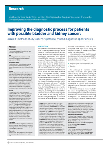 Title: | Improving the diagnostic process for patients with possible bladder and kidney cancer: a mixed-methods study to identify potential missed diagnostic opportunities |