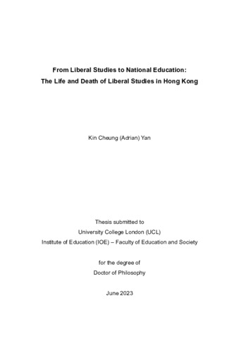 | Title: | From Liberal Studies to National Education: The Life and Death of Liberal Studies in Hong Kong |