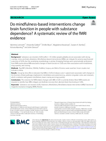 Title: | Do mindfulness-based interventions change brain function in people with substance dependence? A systematic review of the fMRI evidence |