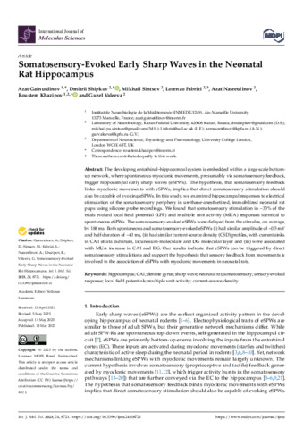 Title: | Somatosensory-Evoked Early Sharp Waves in the Neonatal Rat Hippocampus |