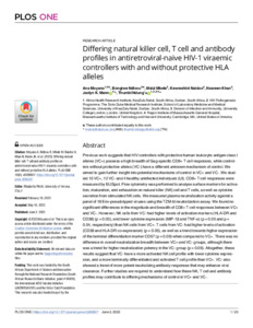 Differing natural killer cell, T cell and antibody profiles in antiretroviral-naive HIV-1 viraemic controllers with and without protective HLA alleles.
