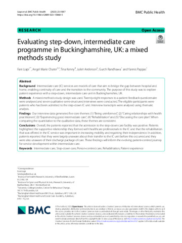 Title: | Evaluating step-down, intermediate care programme in Buckinghamshire, UK: a mixed methods study |