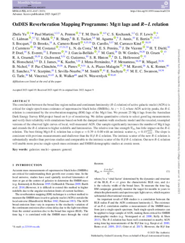 Title: | OzDES Reverberation Mapping Programme: Mg II lags and R−L relation |