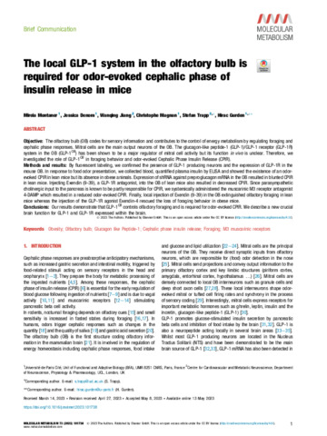 Title: | The local GLP-1 system in the olfactory bulb is required for odor-evoked cephalic phase of insulin release in mice |
