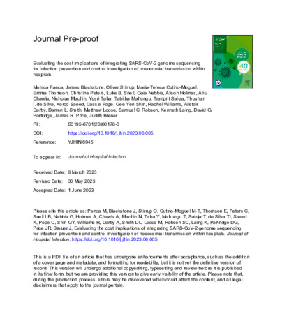 Evaluating the cost implications of integrating SARS-CoV-2 genome sequencing for infection prevention and control investigation of nosocomial transmission within hospitals.