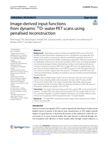| Title: | Image-derived input functions from dynamic O-15-water PET scans using penalised reconstruction |