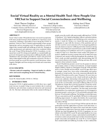 Title: | Social Virtual Reality as a Mental Health Tool: How People Use VRChat to Support Social Connectedness and Wellbeing |