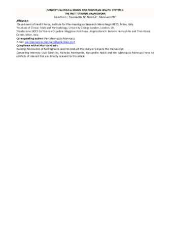 Title: | Conceptualizing a model for European health systems: the institutional framework |
