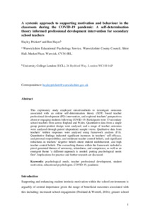 Title: | A systemic approach to supporting motivation and behaviour in secondary classrooms during COVID: a professional development intervention using self-determination theory |