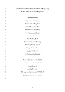Title: | Who would continue to work from home in Hong Kong as the COVID-19 pandemic progresses? |