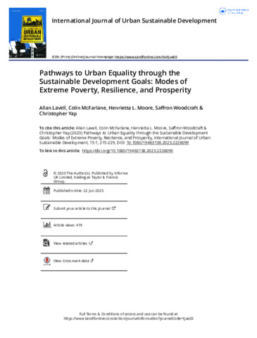 | Title: | Pathways to Urban Equality through the Sustainable Development Goals: Modes of Extreme Poverty, Resilience, and Prosperity |