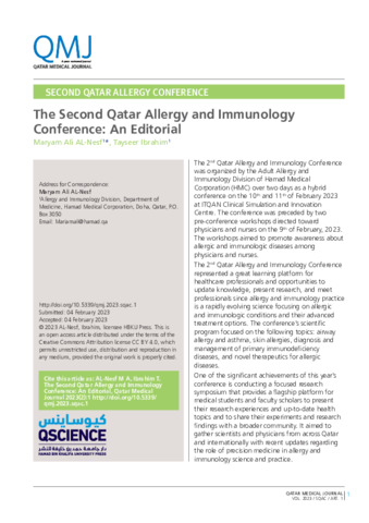 Title: | The Second Qatar Allergy and Immunology Conference: An Editorial |