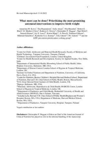 Title: | What more can be done? Prioritizing the most promising antenatal interventions to improve birth weight |