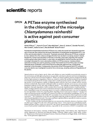Purton_A PETase enzyme synthesised in the chloroplast of the microalga Chlamydomonas reinhardtii is active against post-consumer plastics_VoR.pdf - Published Version Download (1MB) | Preview |