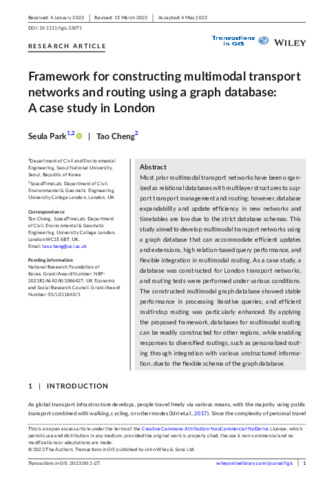 Title: | Framework for constructing multimodal transport networks and routing using a graph database: A case study in London |