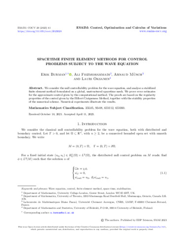 | Keywords: | Wave equation, control, finite element method, space time, stabilisation |