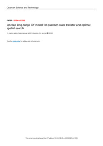 Title: | Ion trap long-range XY model for quantum state transfer and optimal spatial search |
