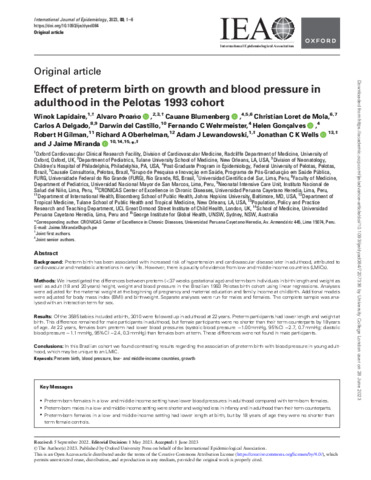 Effect of preterm birth on growth and blood pressure in adulthood in the Pelotas 1993 cohort.