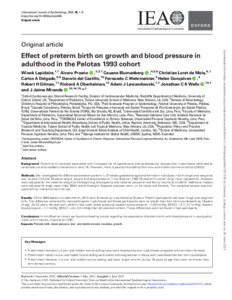 Title: | Effect of preterm birth on growth and blood pressure in adulthood in the Pelotas 1993 cohort |
