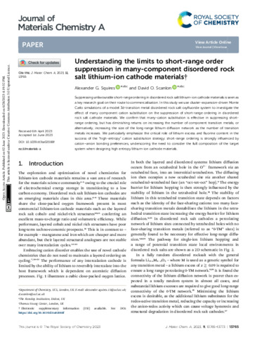 | Title: | Understanding the limits to short-range order suppression in many-component disordered rock salt lithium-ion cathode materials |