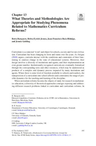 Title: | What theories and methodologies are appropriate for studying phenomena related to mathematics curriculum reforms? |