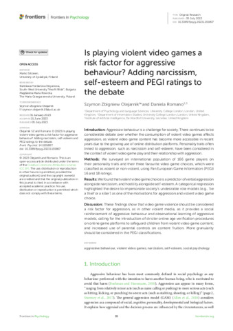 | Title: | Is Playing Violent Video Games a Risk Factor for Aggressive Behaviour? Adding Narcissism, Self-esteem and PEGI Ratings to the Debate |