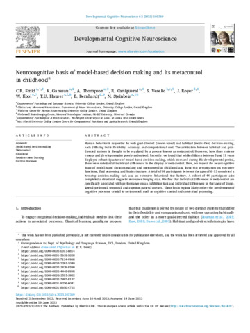 Title: | Neurocognitive basis of model-based decision making and its metacontrol in childhood |