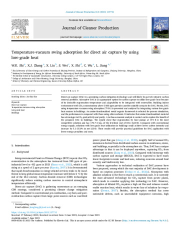 Title: | Temperature-vacuum swing adsorption for direct air capture by using low-grade heat |