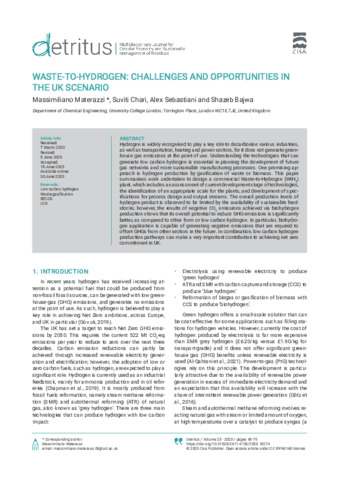 Title: | Waste-to-Hydrogen: challenges and opportunities in the UK scenario |