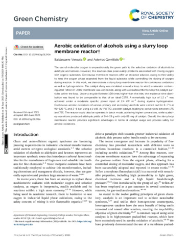 Title: | Aerobic oxidation of alcohols using a slurry loop membrane reactor |