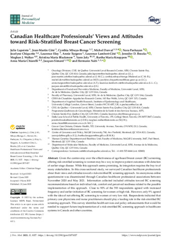 Title: | Canadian Healthcare Professionals’ Views and Attitudes toward Risk-Stratified Breast Cancer Screening |