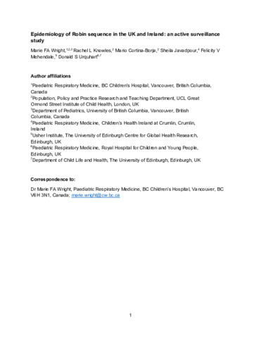 Title: | Epidemiology of Robin sequence in the UK and Ireland: an active surveillance study |