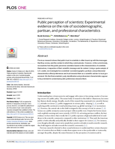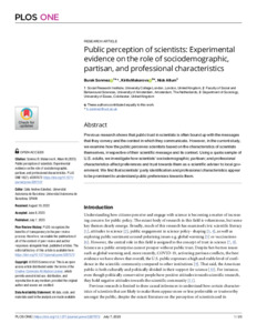 Title: | Public perception of scientists: Experimental evidence on the role of sociodemographic, partisan, and professional characteristics |