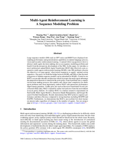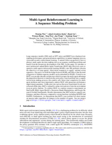 Title: | Multi-Agent Reinforcement Learning is A Sequence Modeling Problem |