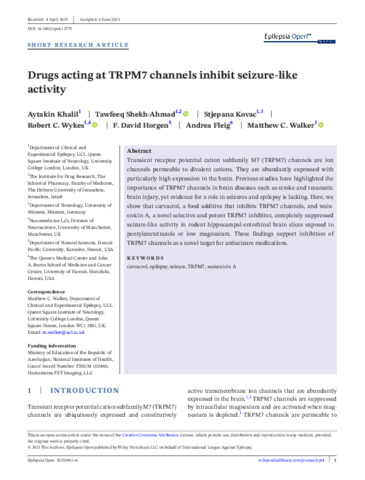 | Title: | Drugs acting at TRPM7 channels inhibit seizure-like activity |