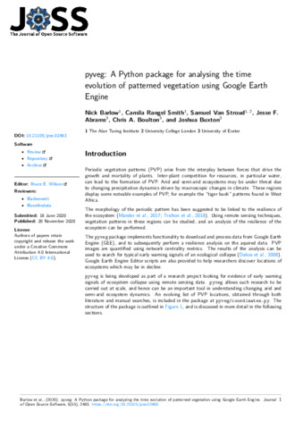 Title: | pyveg: A Python package for analysing the time evolution of patterned vegetation using Google Earth Engine |