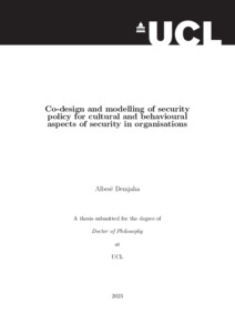 Title: | Co-design and modelling of security policy for cultural and behavioural aspects of security in organisations |