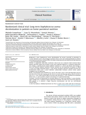 Title: | Randomized clinical trial: Long-term Staphylococcus aureus decolonization in patients on home parenteral nutrition |