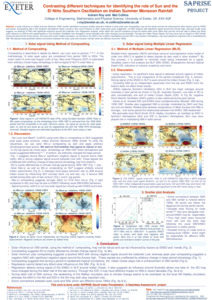 Contrasting different techniques for identifying the role of Sun and the El Niño Southern Oscillation on Indian Summer Monsoon Rainfall.