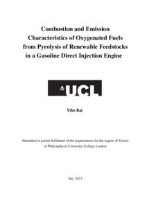 Title: | Combustion and Emission Characteristics of Oxygenated Fuels from Pyrolysis of Renewable Feedstocks in a Gasoline Direct Injection Engine |