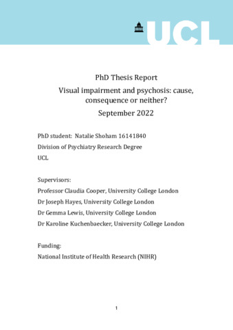 Title: | Visual impairment and psychosis: cause, consequence or neither? |