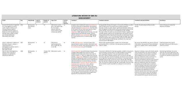 The Infectious Uveitis Treatment Algorithm Network (TITAN) Report 2—global current practice patterns for the management of Cytomegalovirus anterior uveitis.