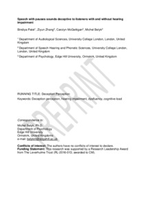 Title: | Speech with pauses sounds deceptive to listeners with and without hearing impairment |